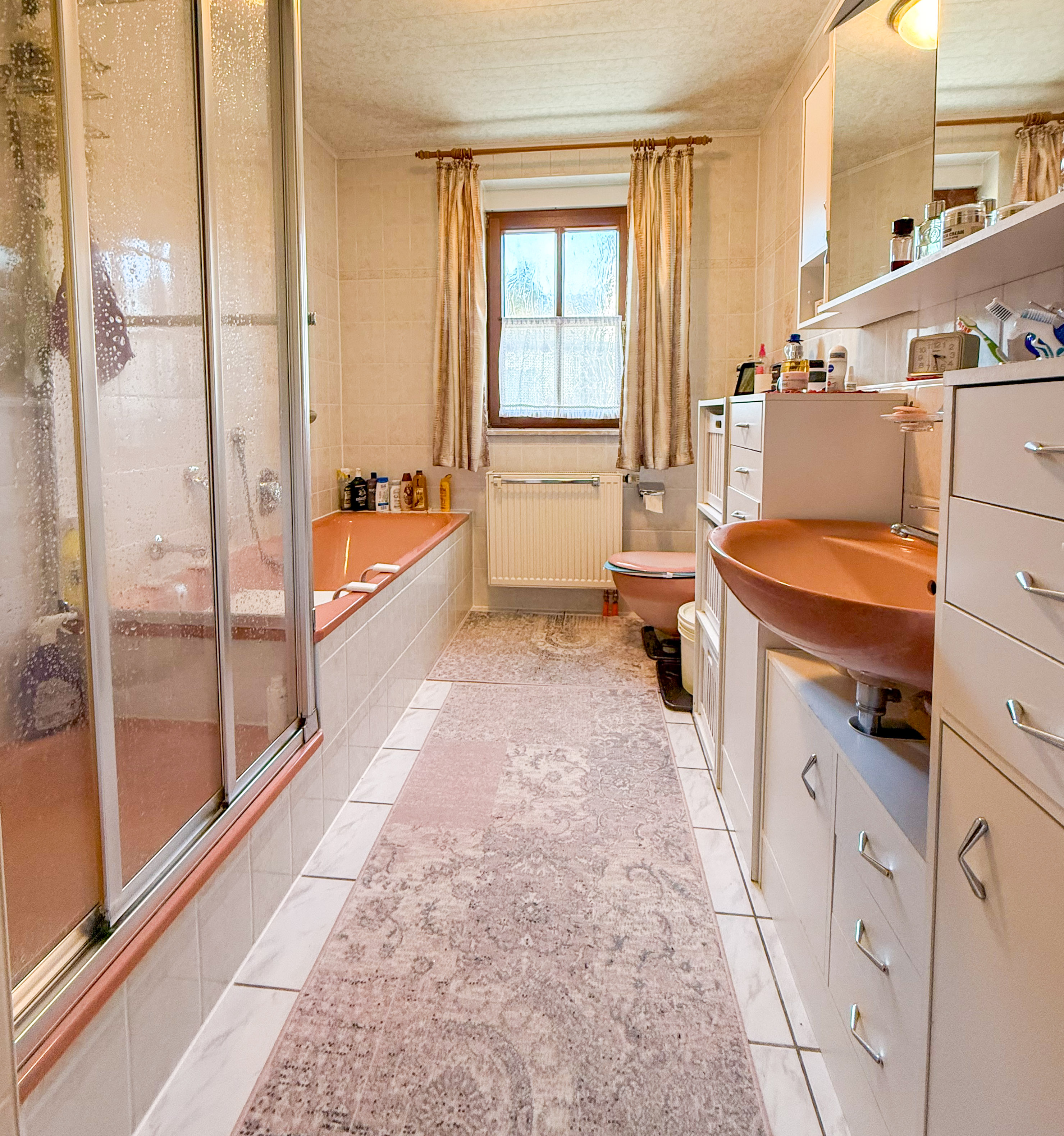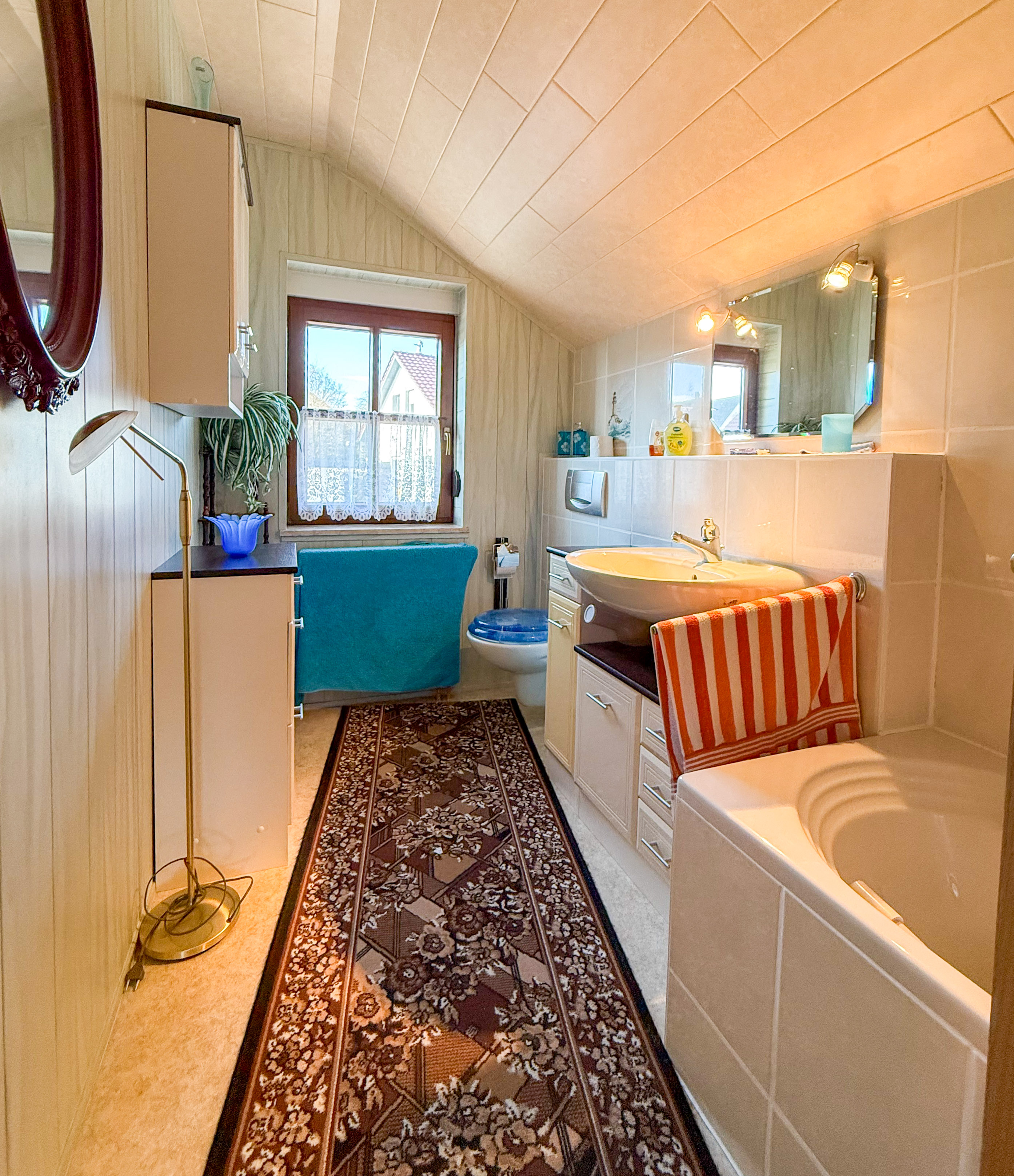 - Ausstattung des Bades Badewanne, Dusche, Fenster