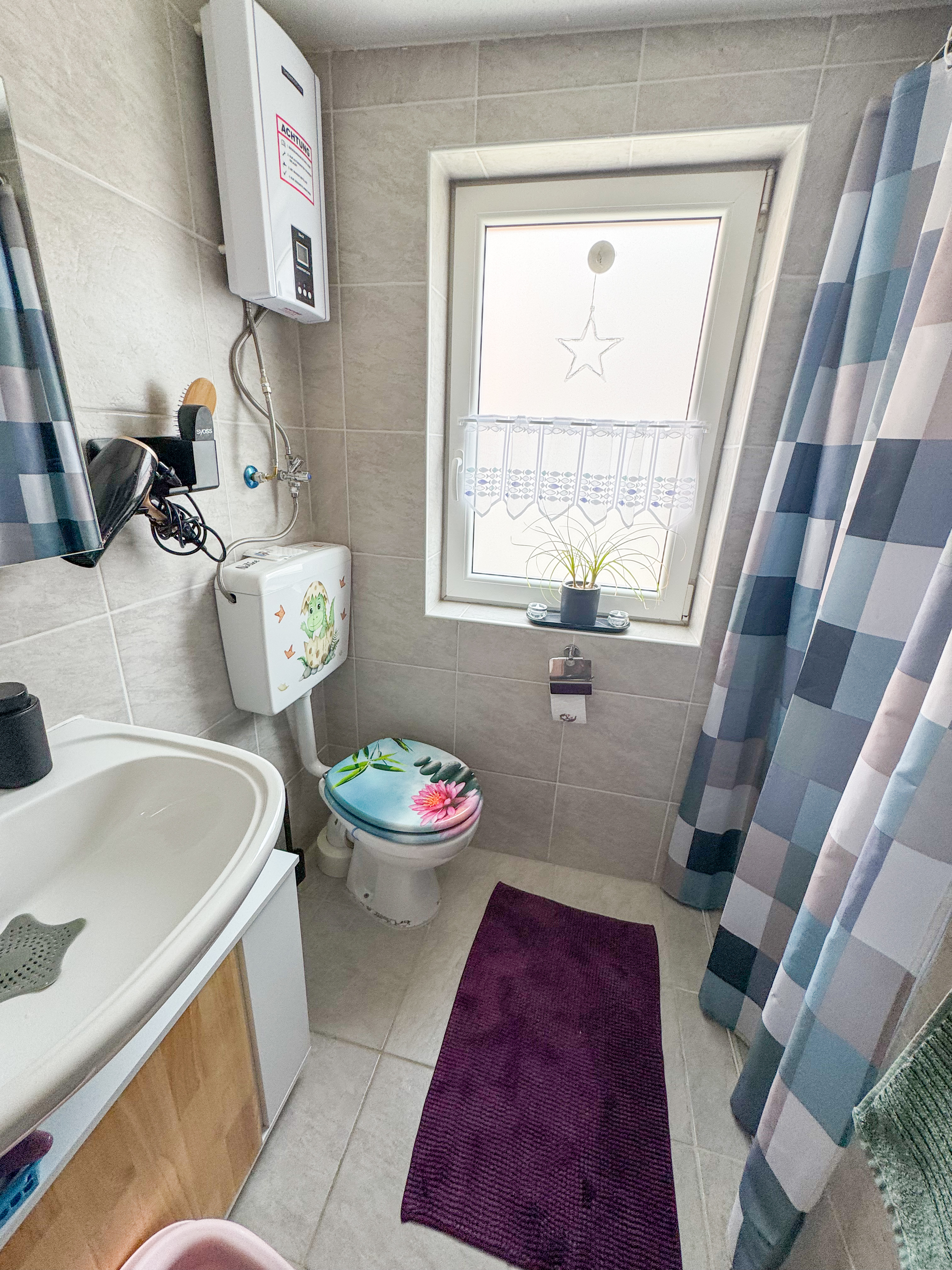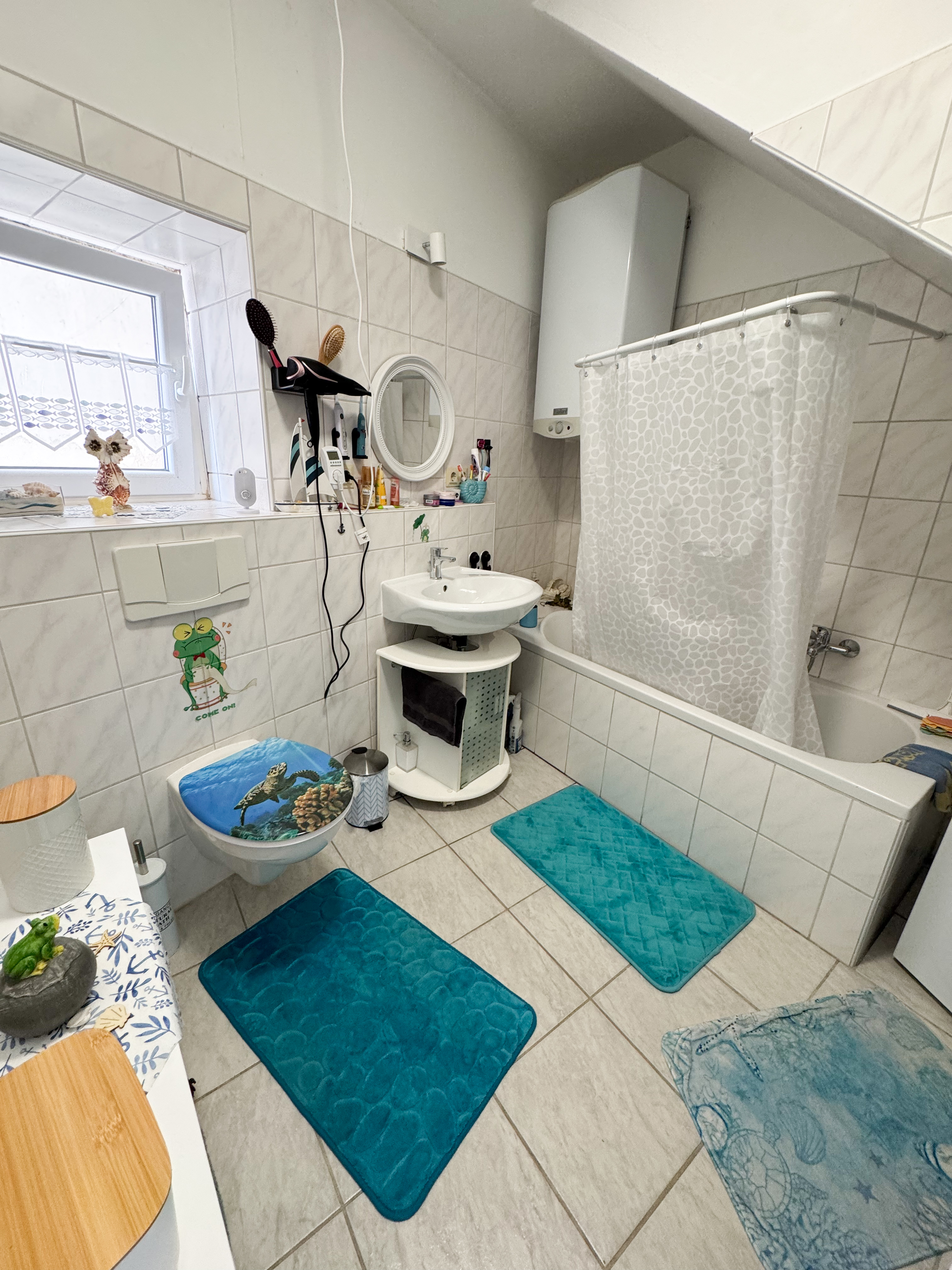 - Ausstattung des Bades Badewanne, Dusche, Fenster