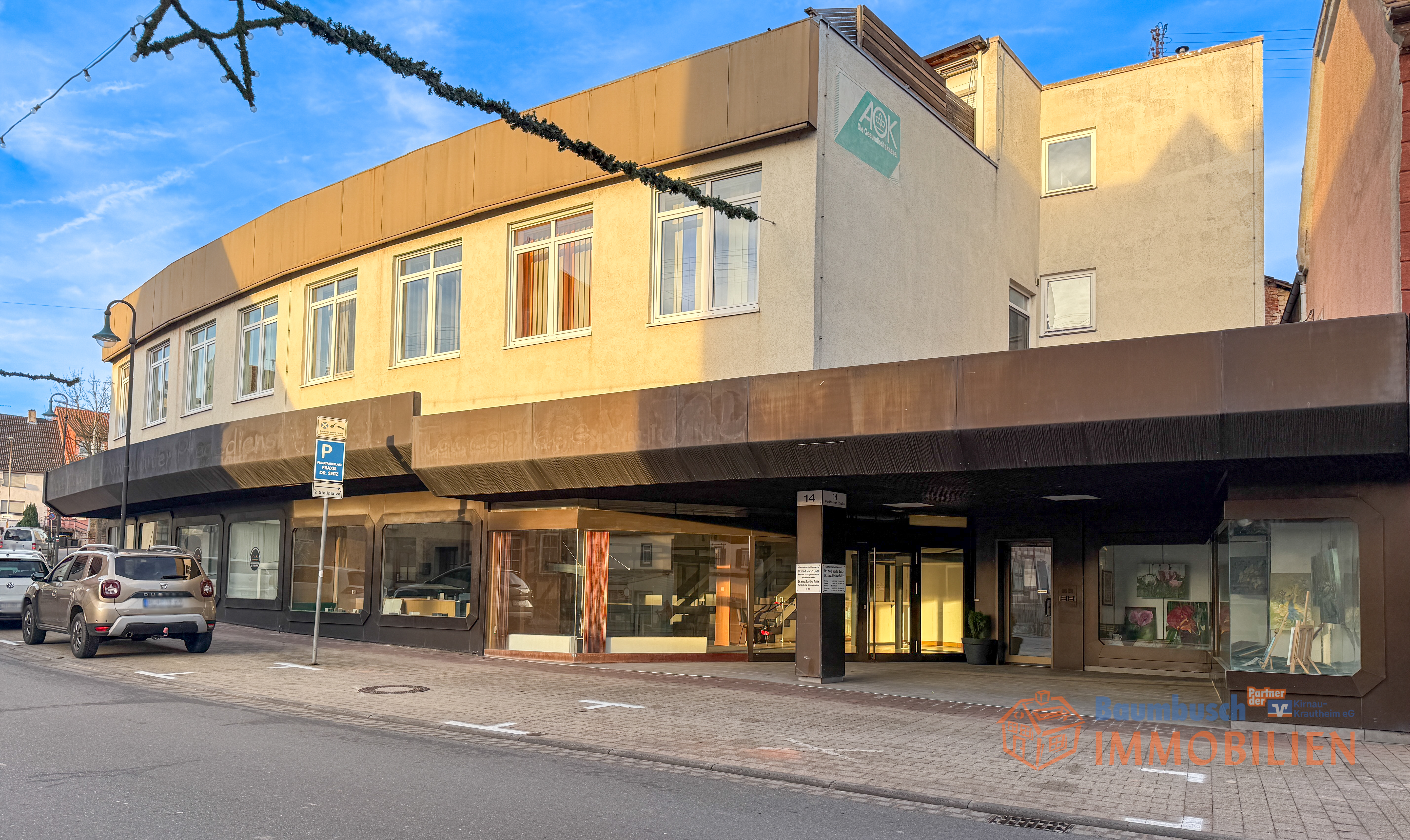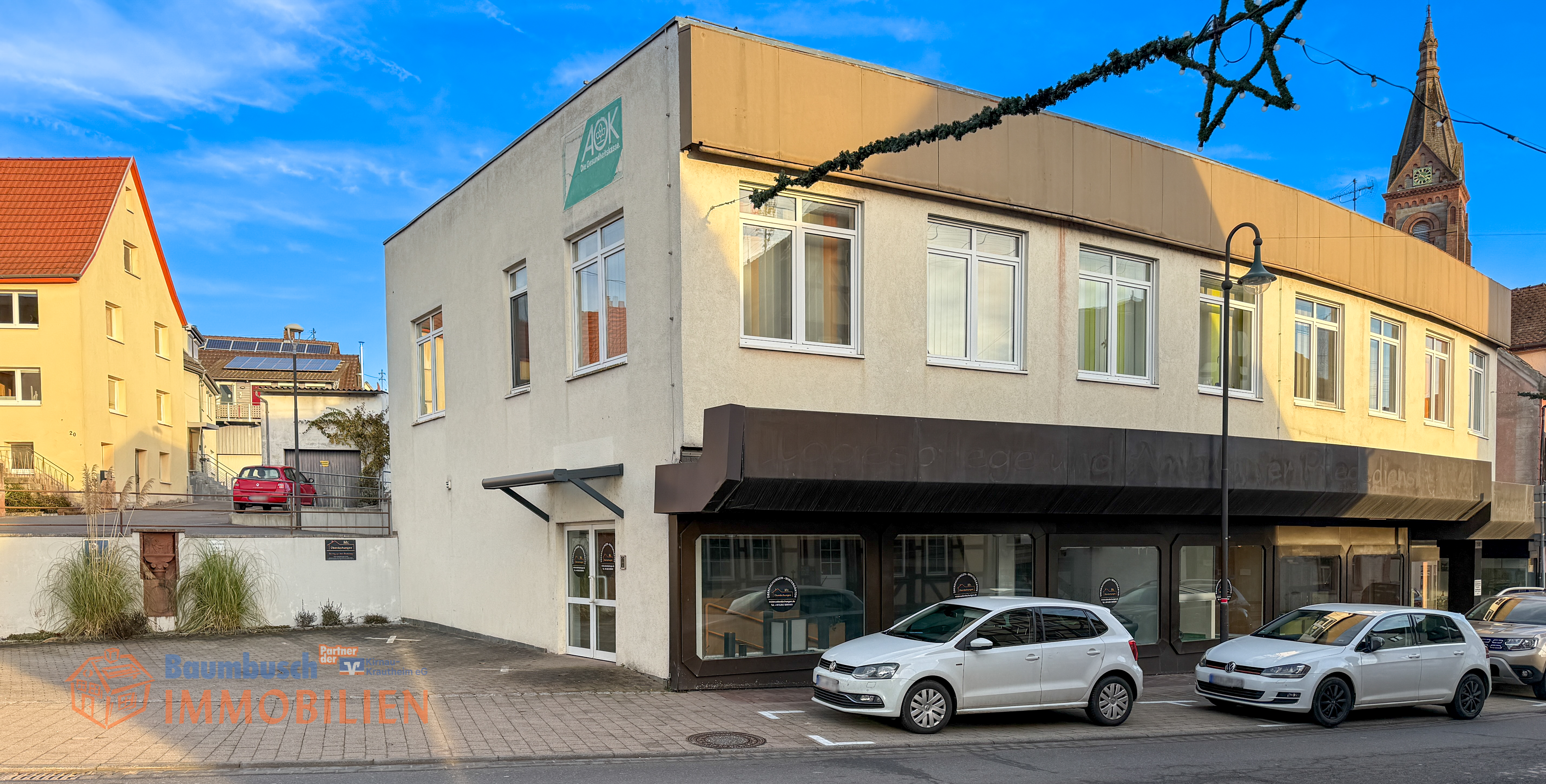 Auf einem 1.044 m² großen Grundstück vereint die Immobilie Wohnen, Gewerbe und medizinische Nutzung in optimaler Weise und bietet eine Gesamtfläche von ca. 1.180 m².