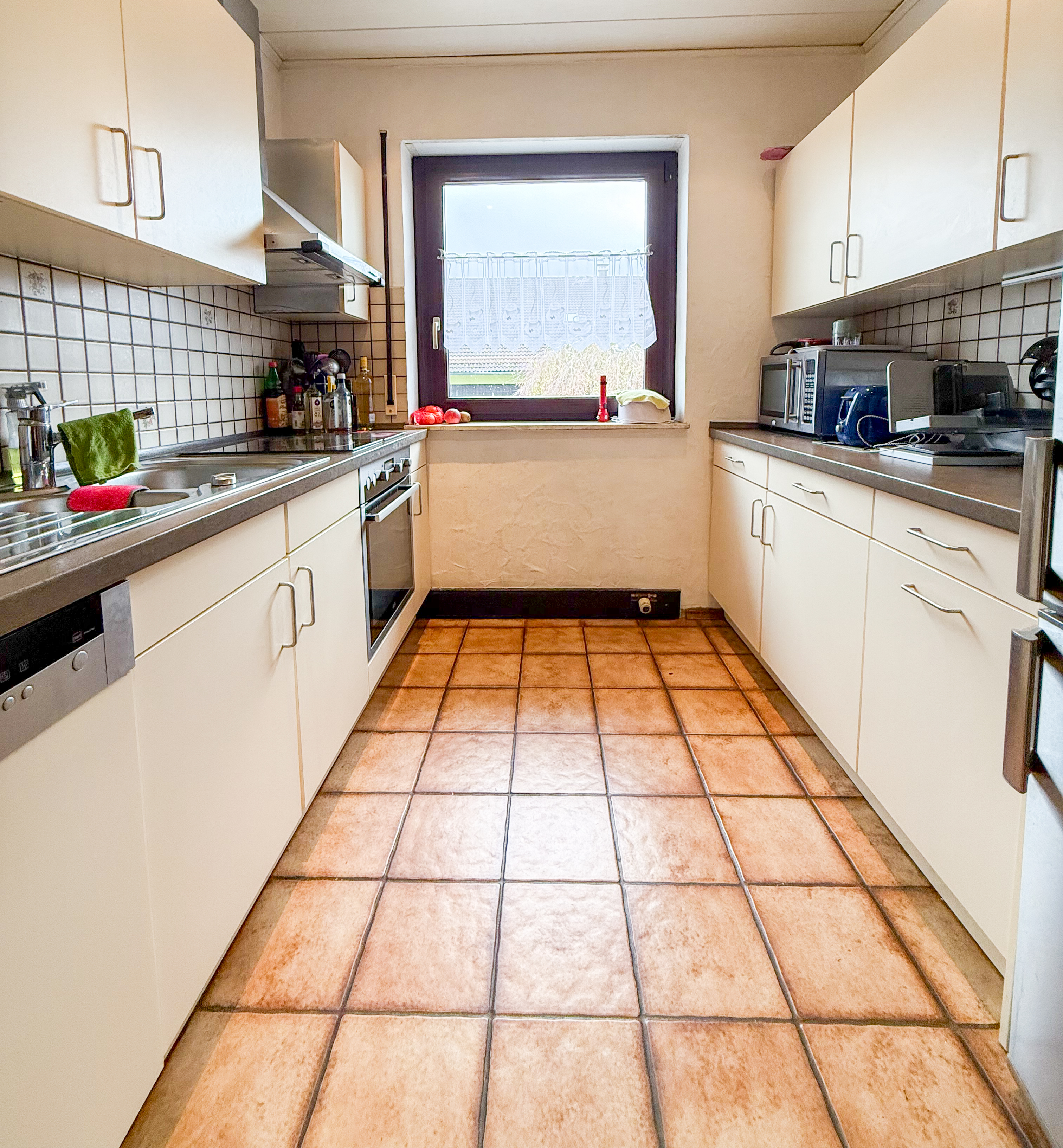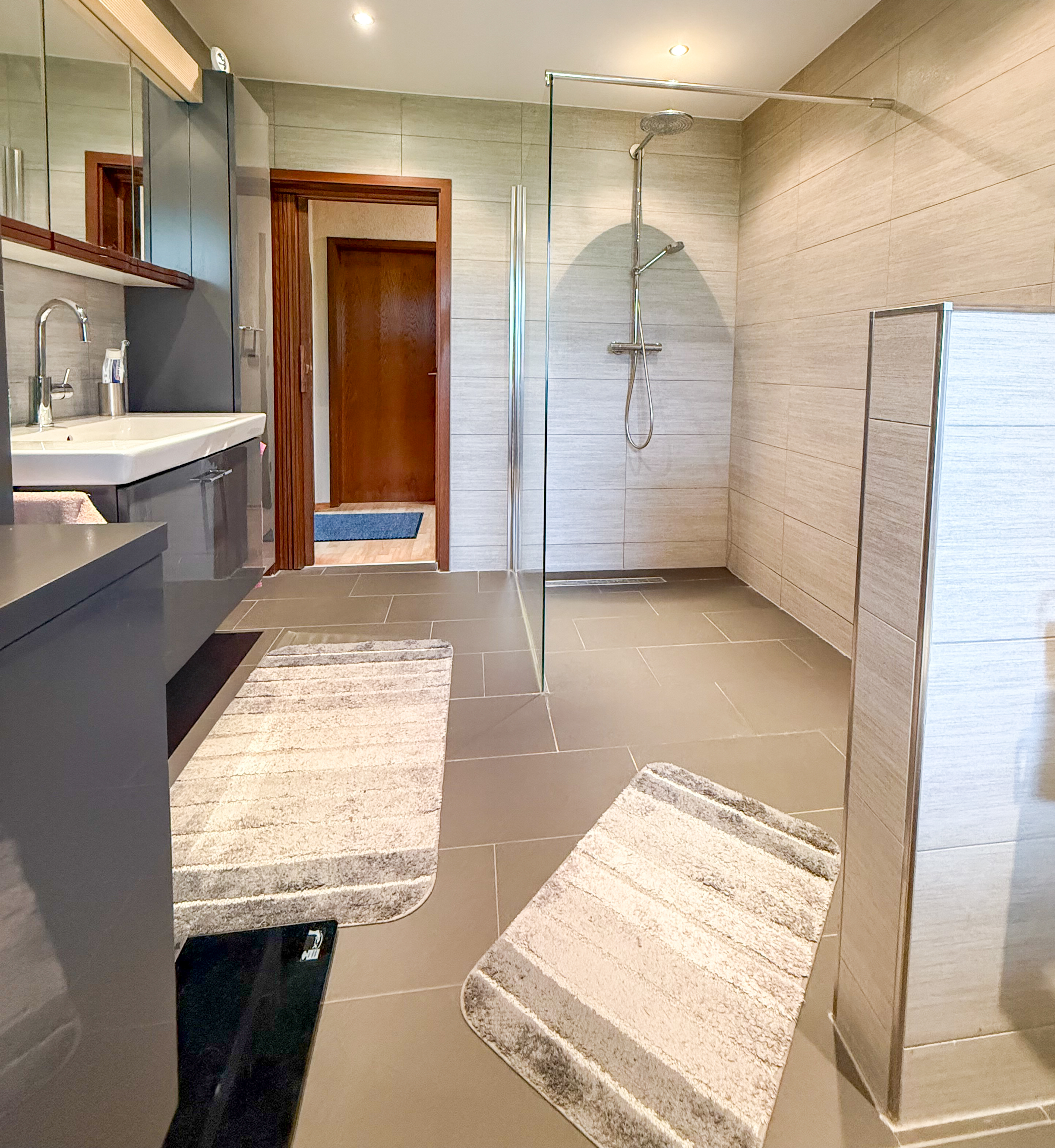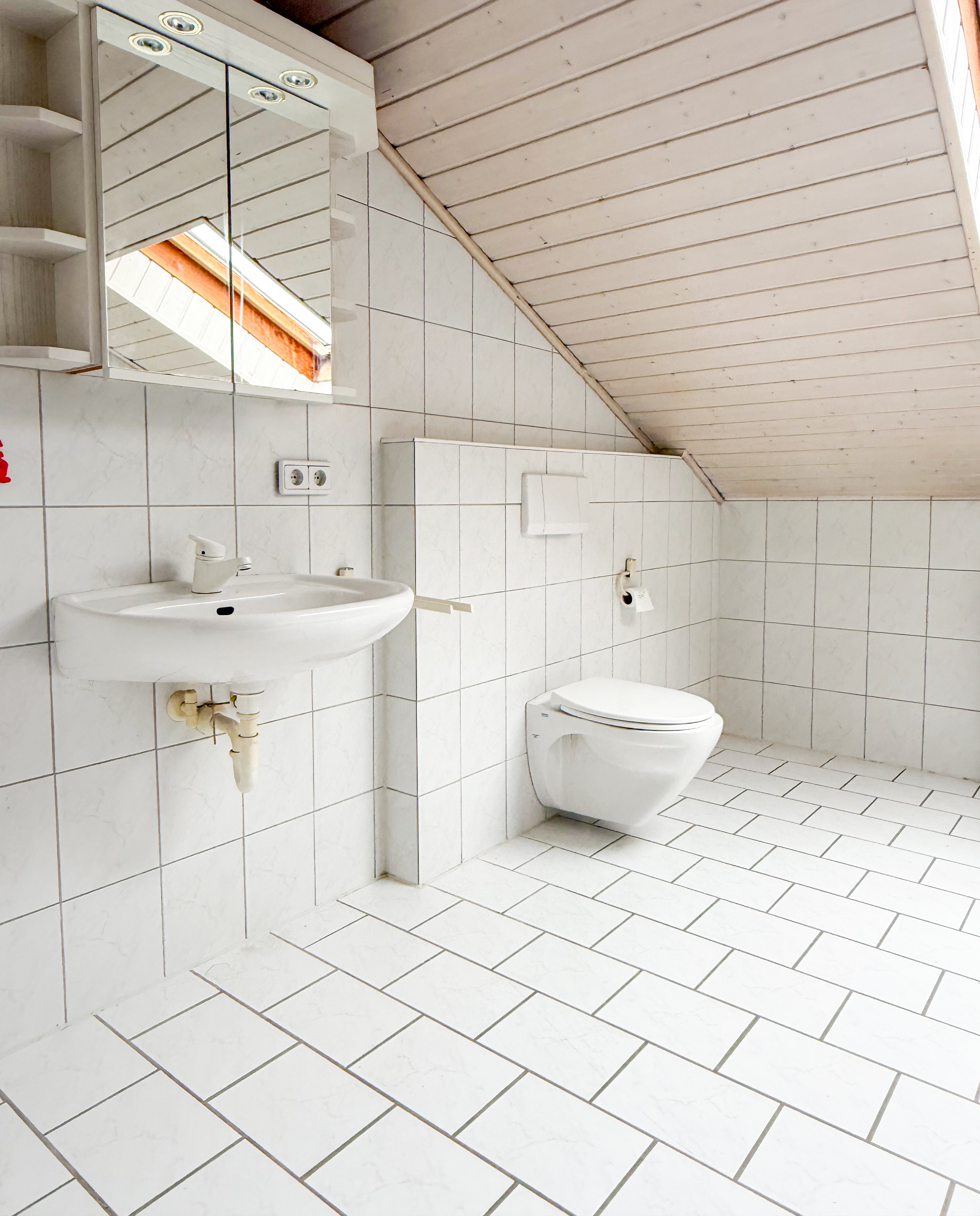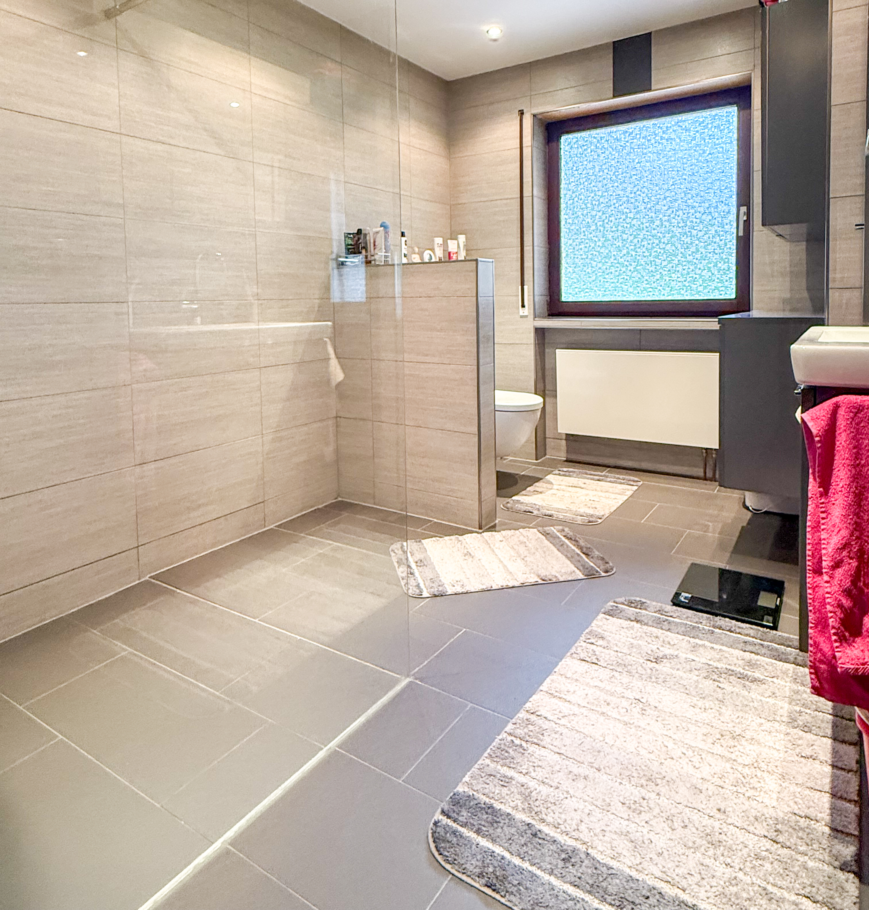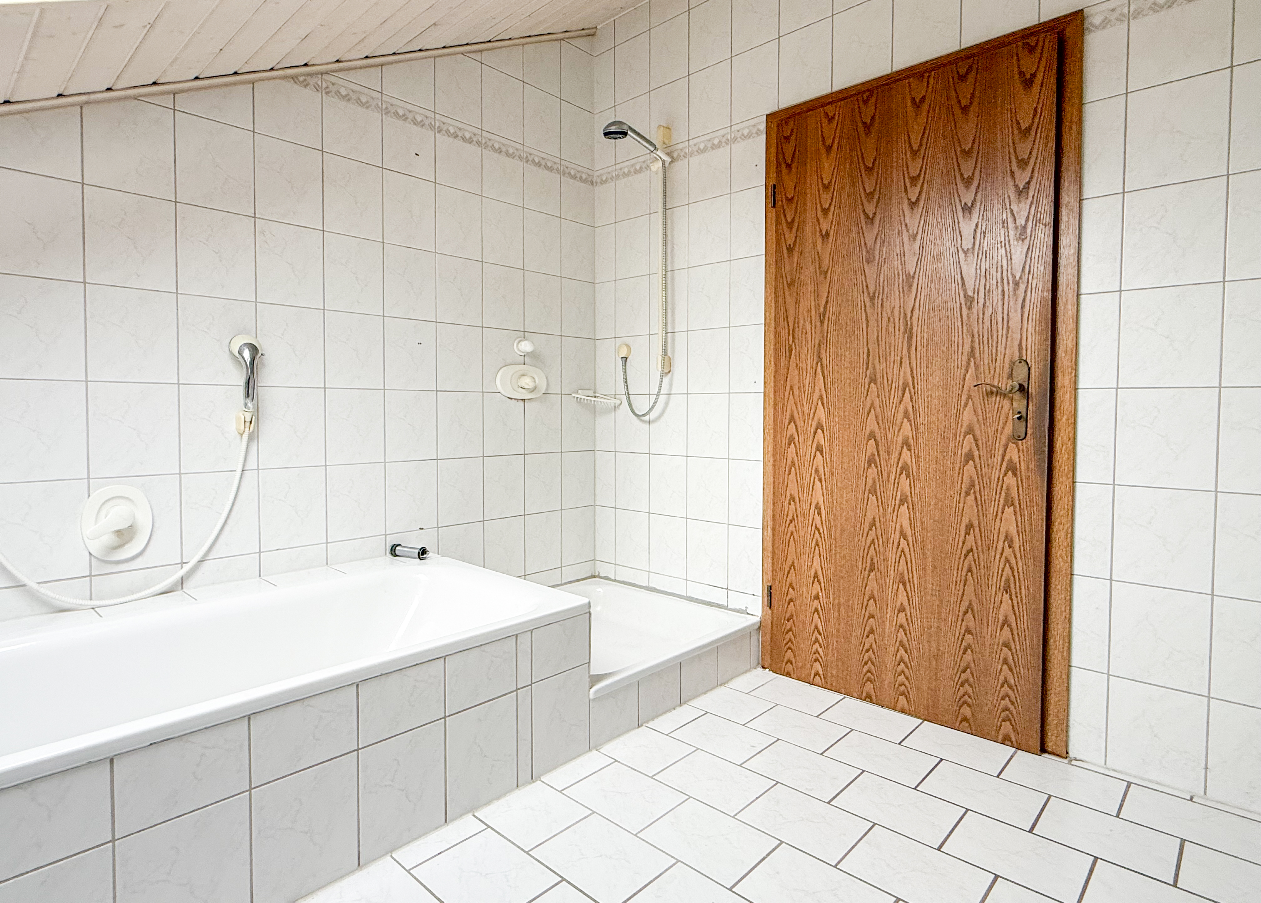 - Ausstattung des Bades Dusche, Badewanne, Fenster