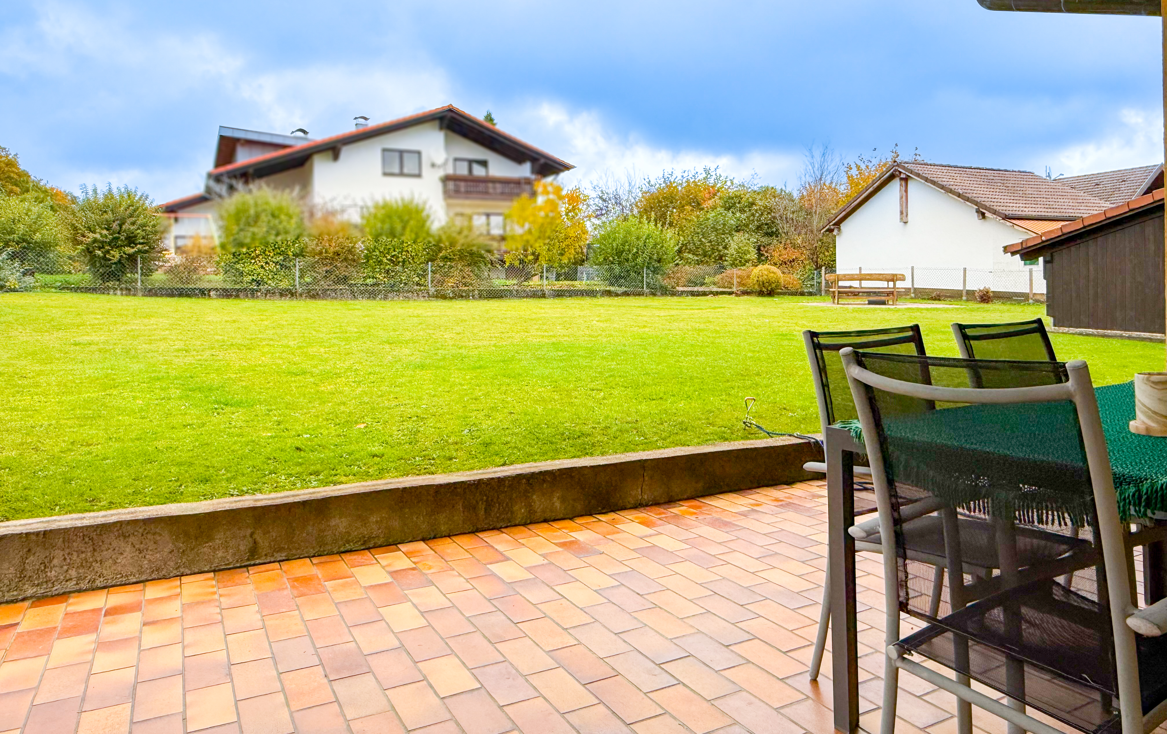Wohn- und Lebensqualität auf rund 217 qm. Die Terrasse lädt zum Entspannen im Freien ein und bietet einen schönen Blick auf den herrlichen Garten.
