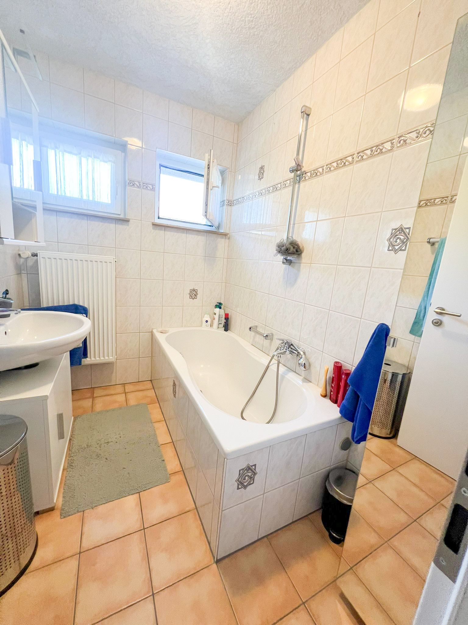 - Ausstattung des Bades Badewanne, Fenster, Dusche