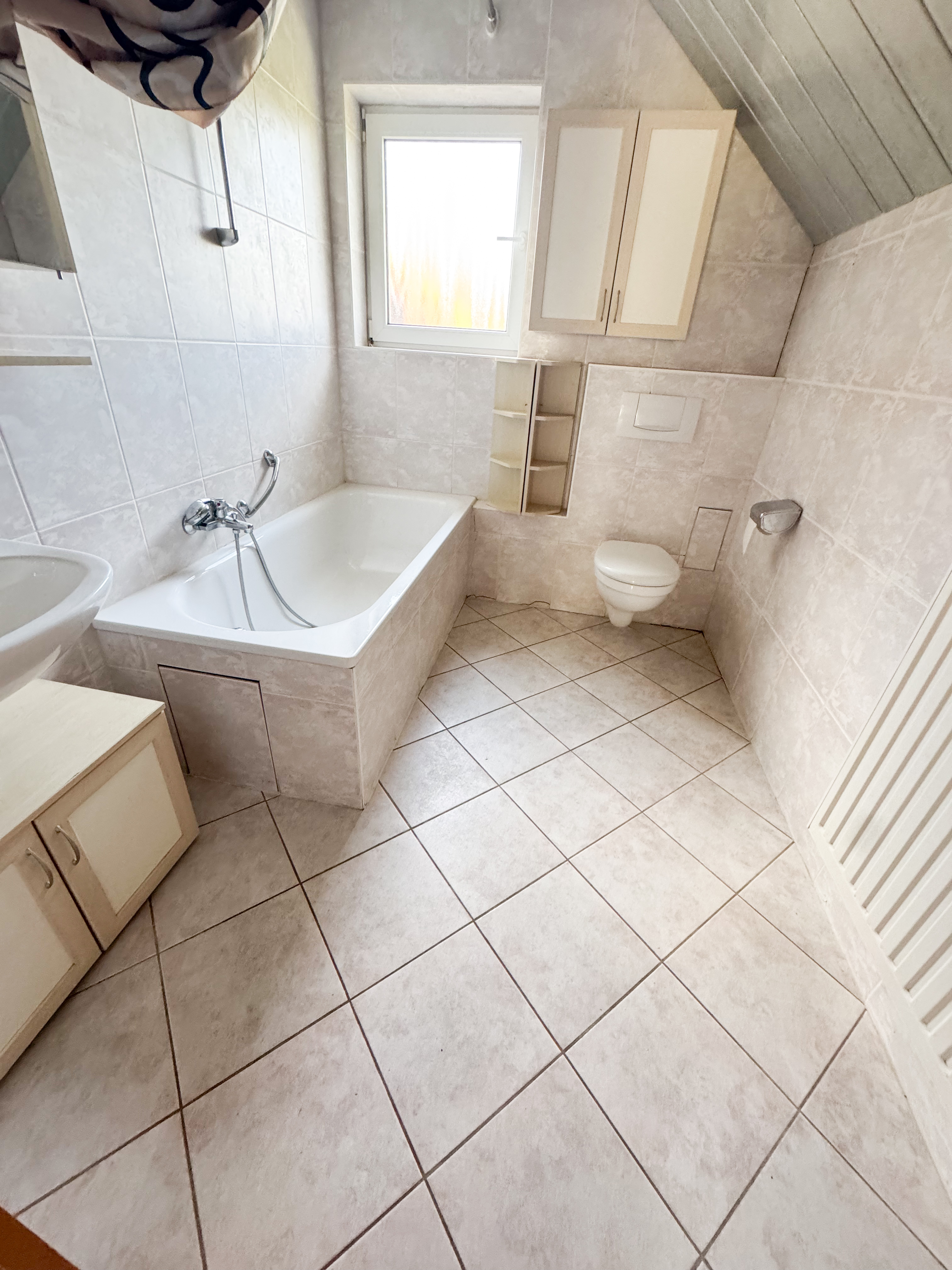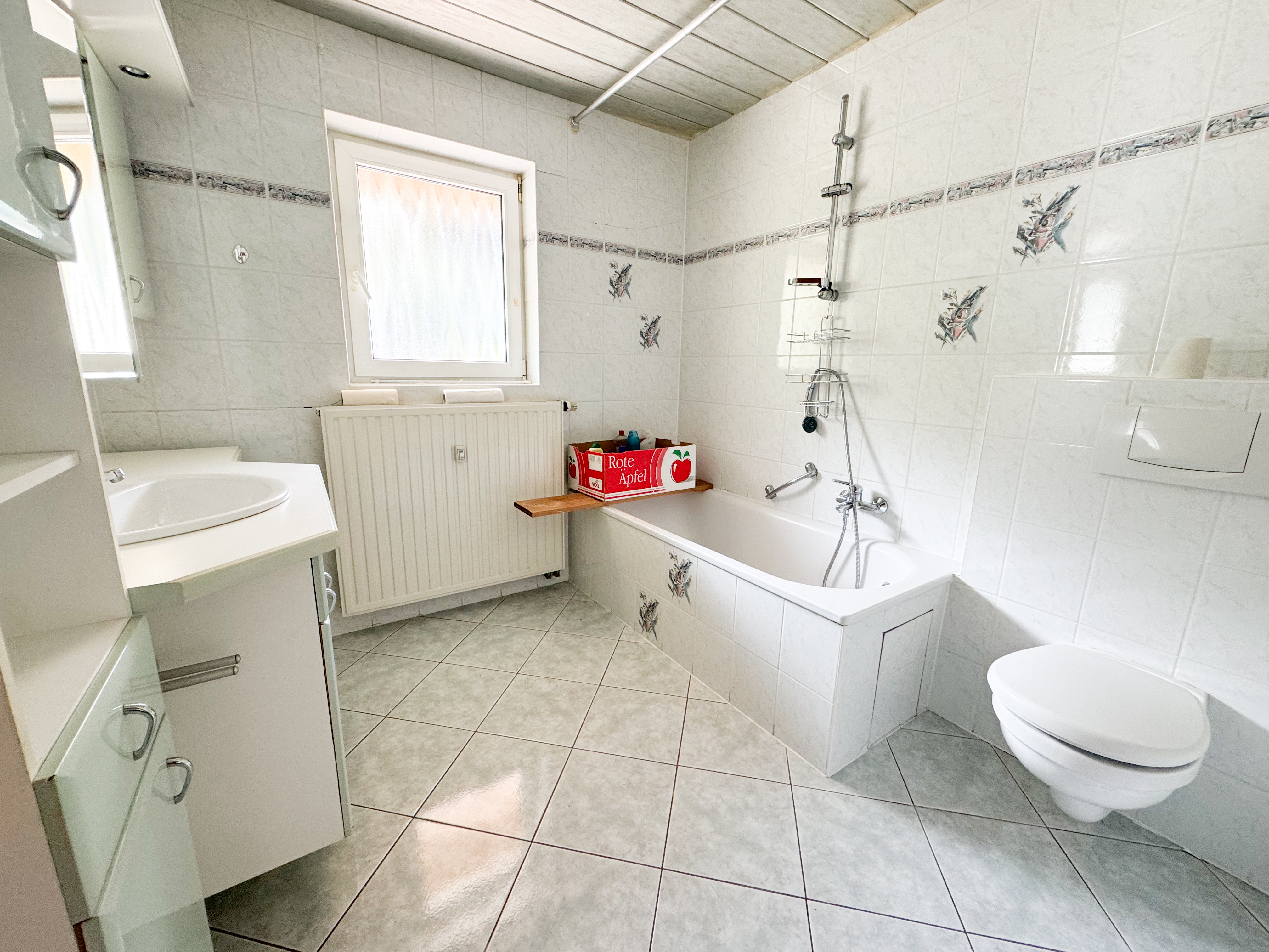 - Ausstattung des Bades Badewanne, Dusche, Fenster