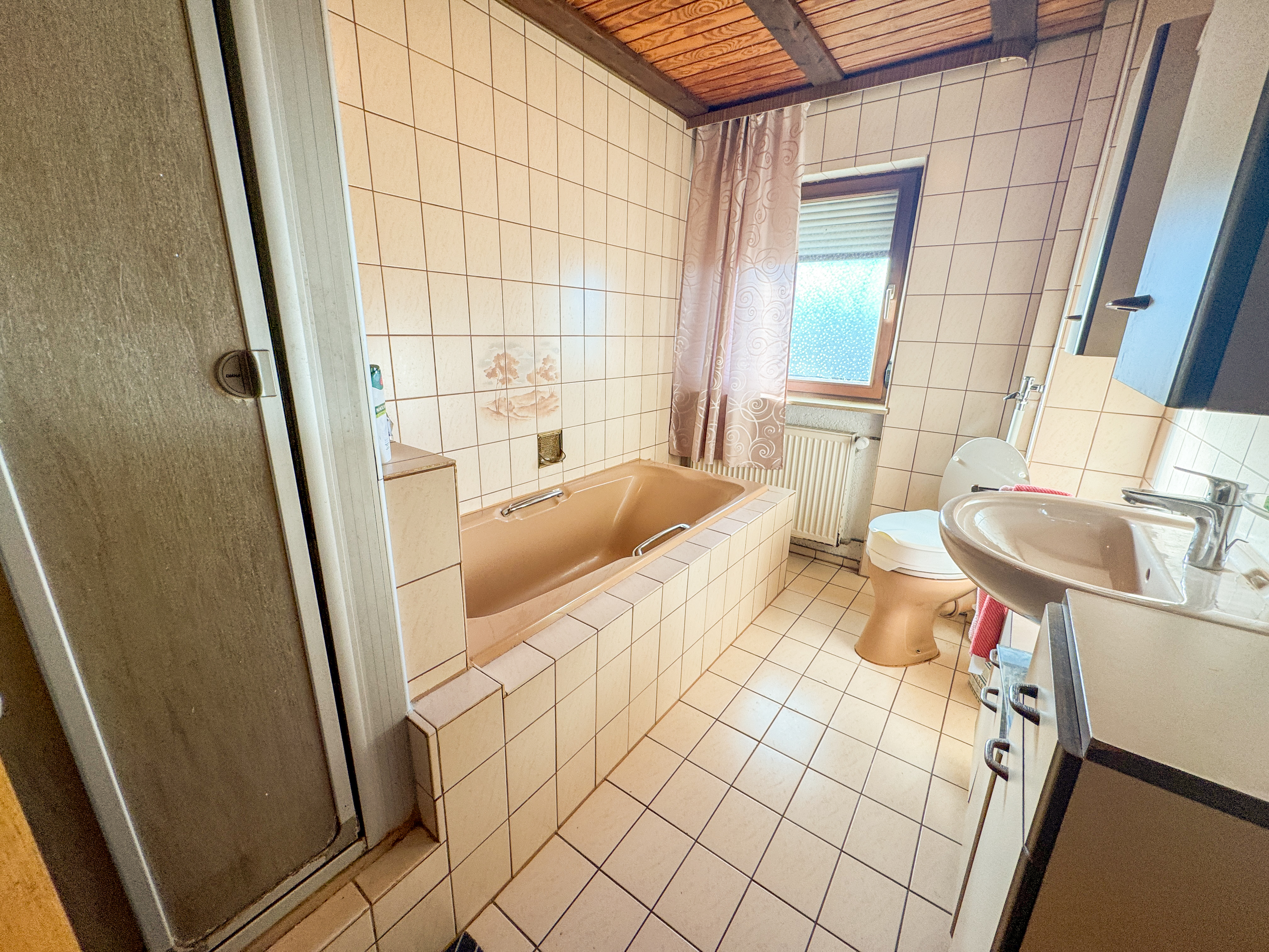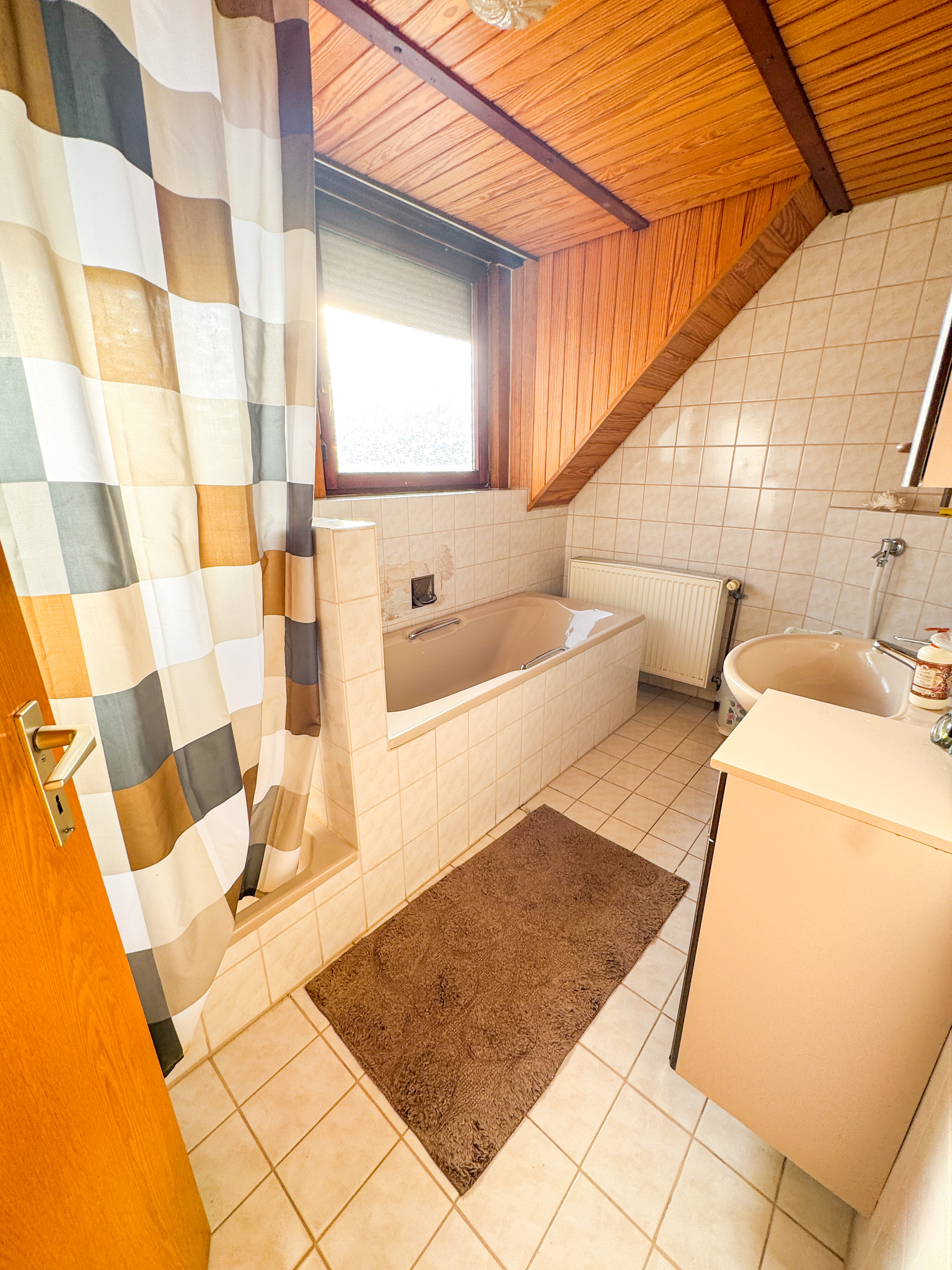 - Ausstattung des Bades Badewanne, Dusche, Fenster