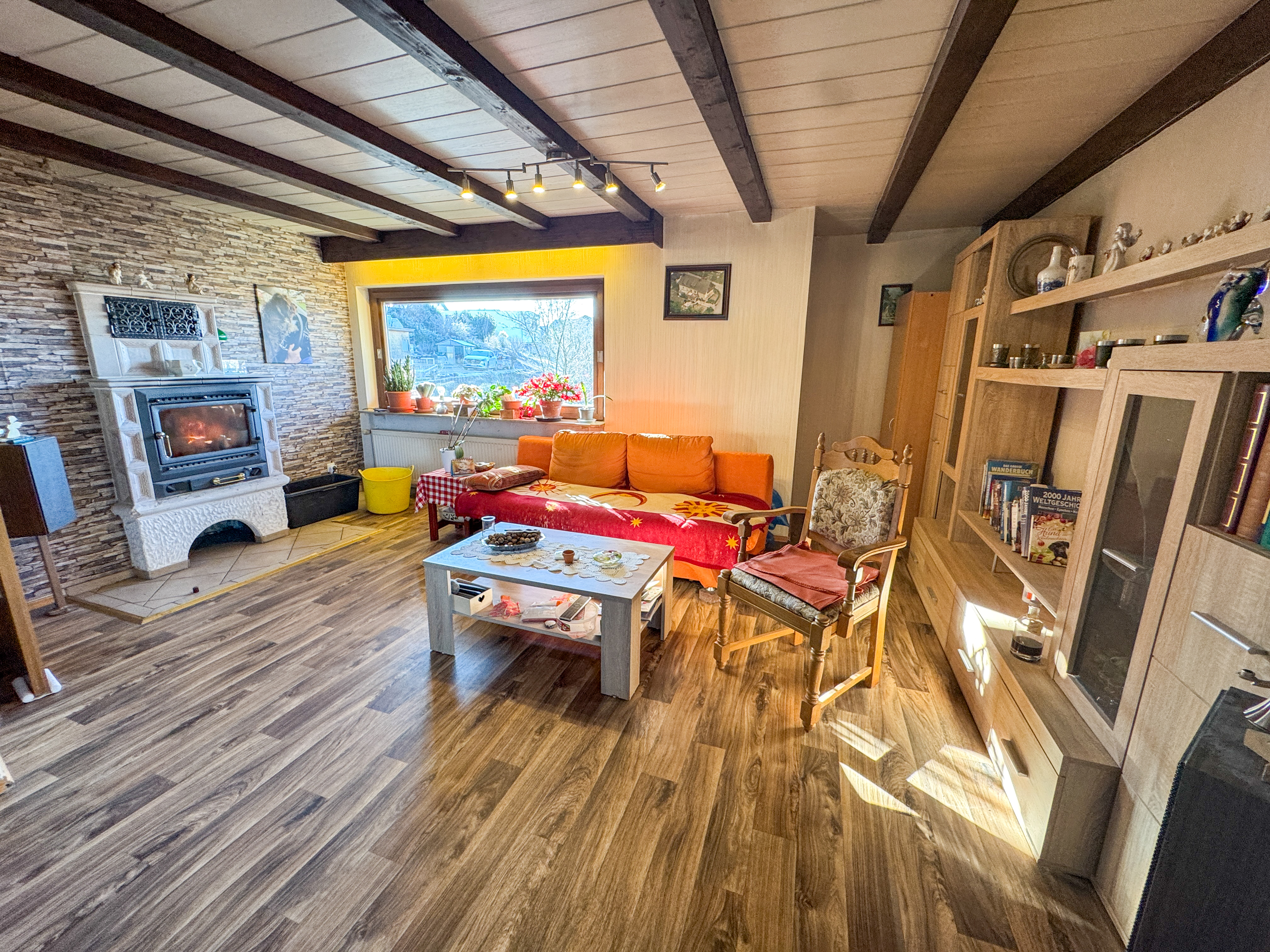 Im Inneren der Doppelhaushälfte erwarten Sie helle und großzügige Räumlichkeiten. Das Wohnzimmer lädt zum Entspannen ein. Der Kamin sorgt neben der Zentralheizung für kuschelige Wärme in der kalten Jahreszeit. Die Küche bietet genügend Platz zum Kochen und gemeinsamen Essen. Die Schlafzimmer sind gemütlich und bieten ausreichend Stauraum. Die zwei Tageslichtbäder machen das Wohnen angenehm.