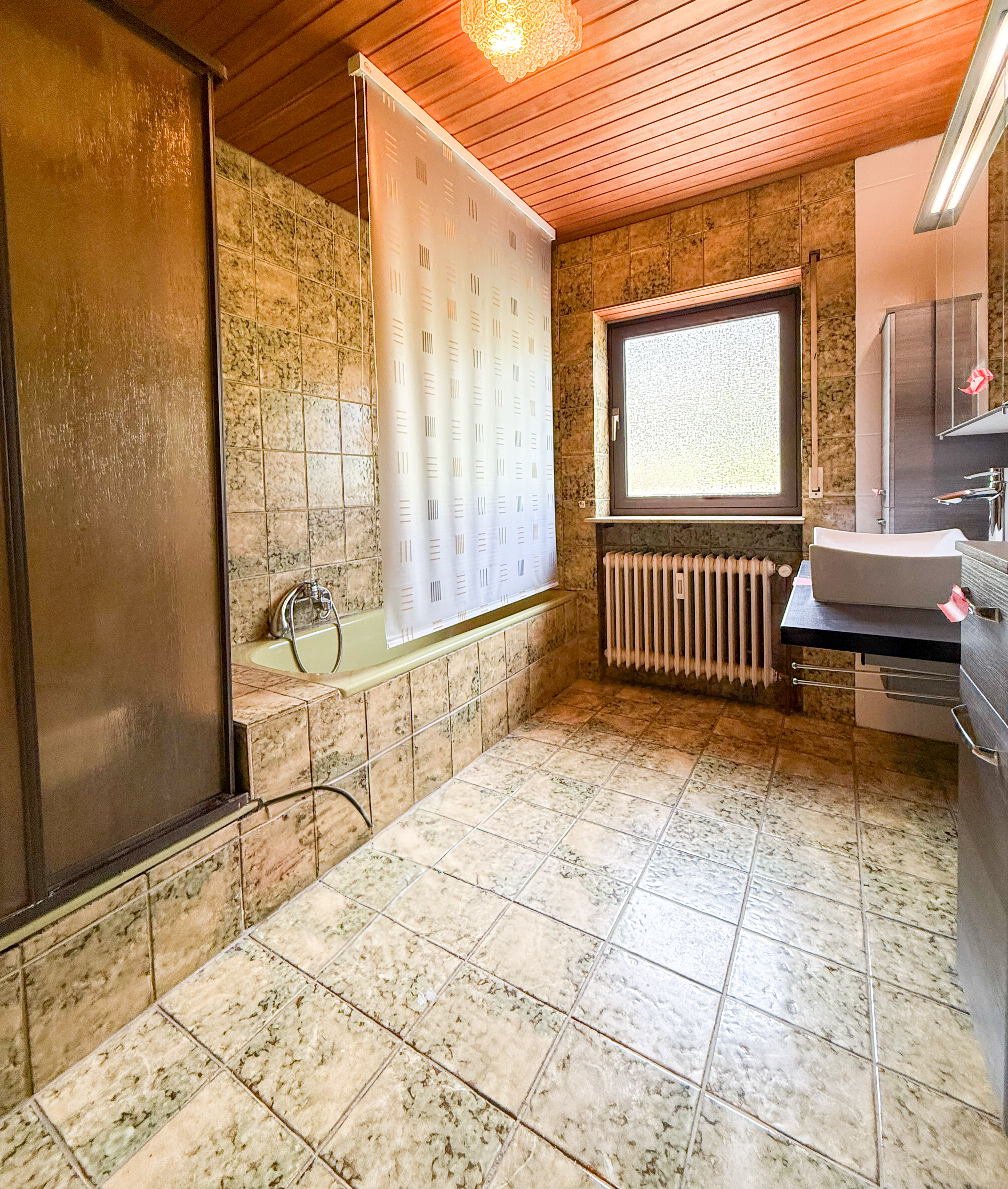 - Ausstattung des Bades Badewanne, Dusche, Fenster