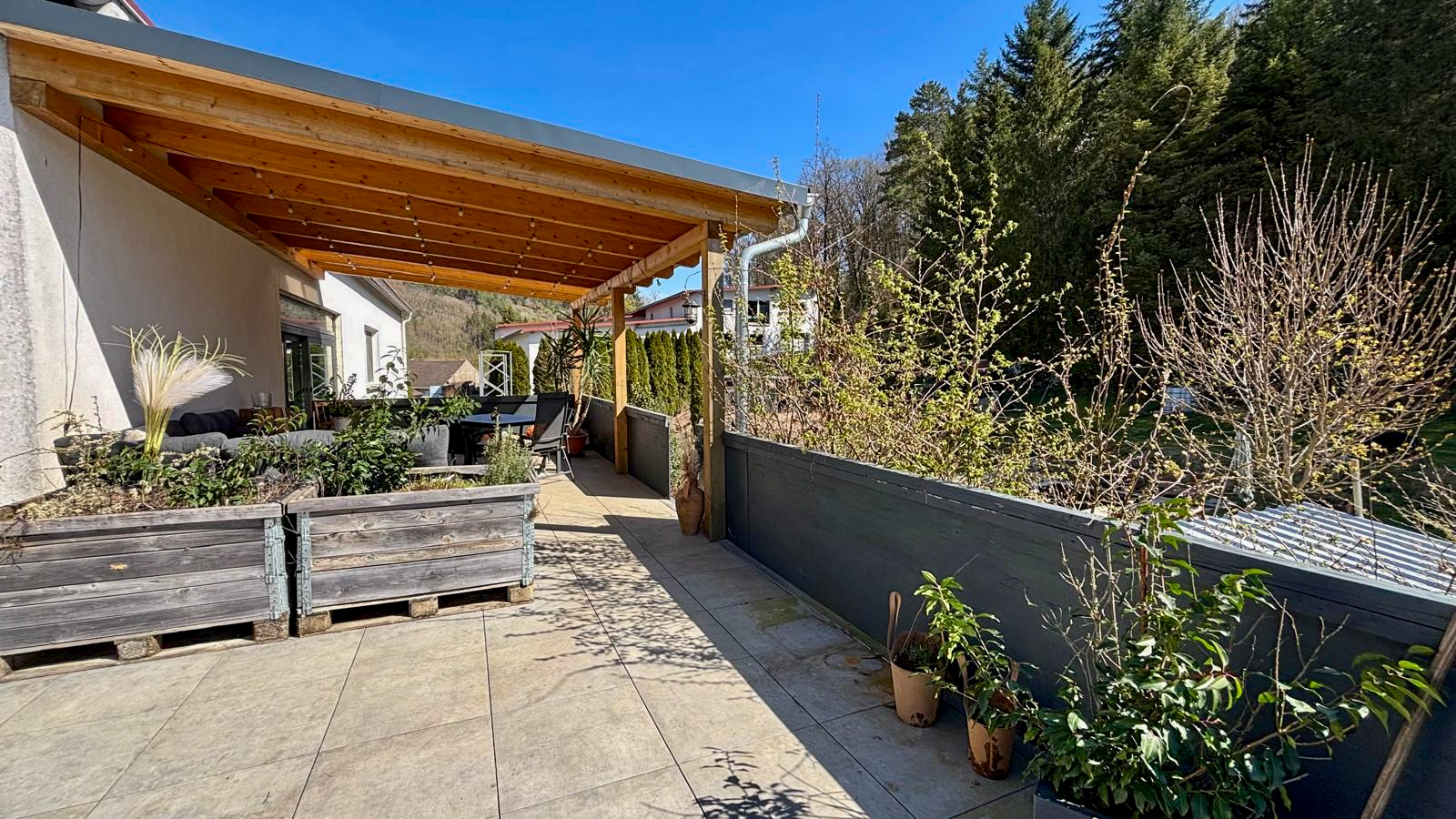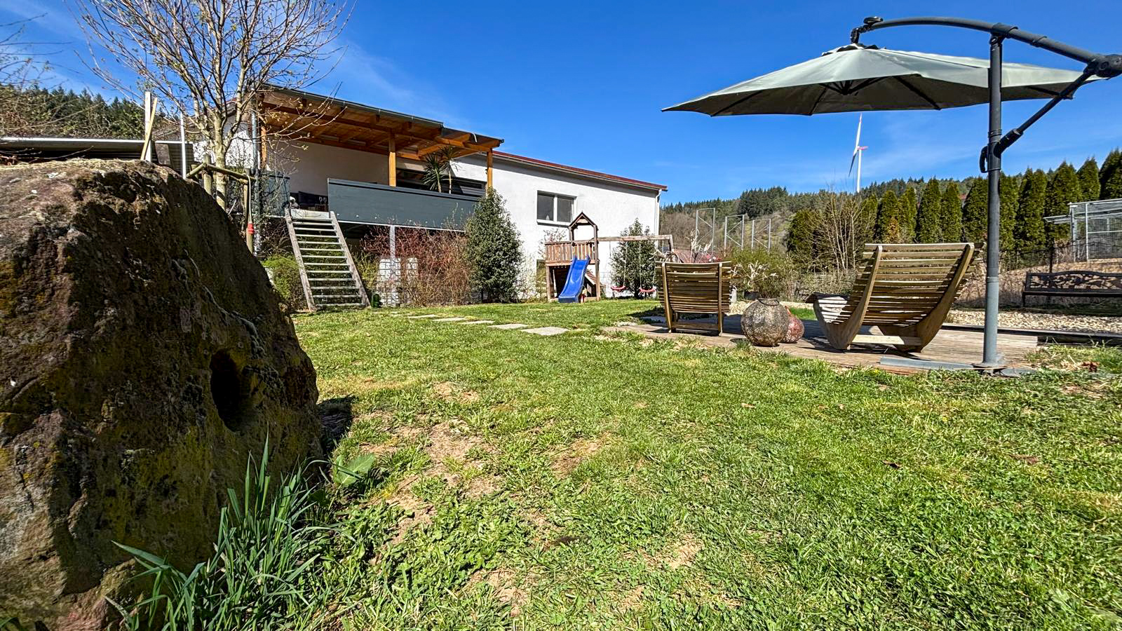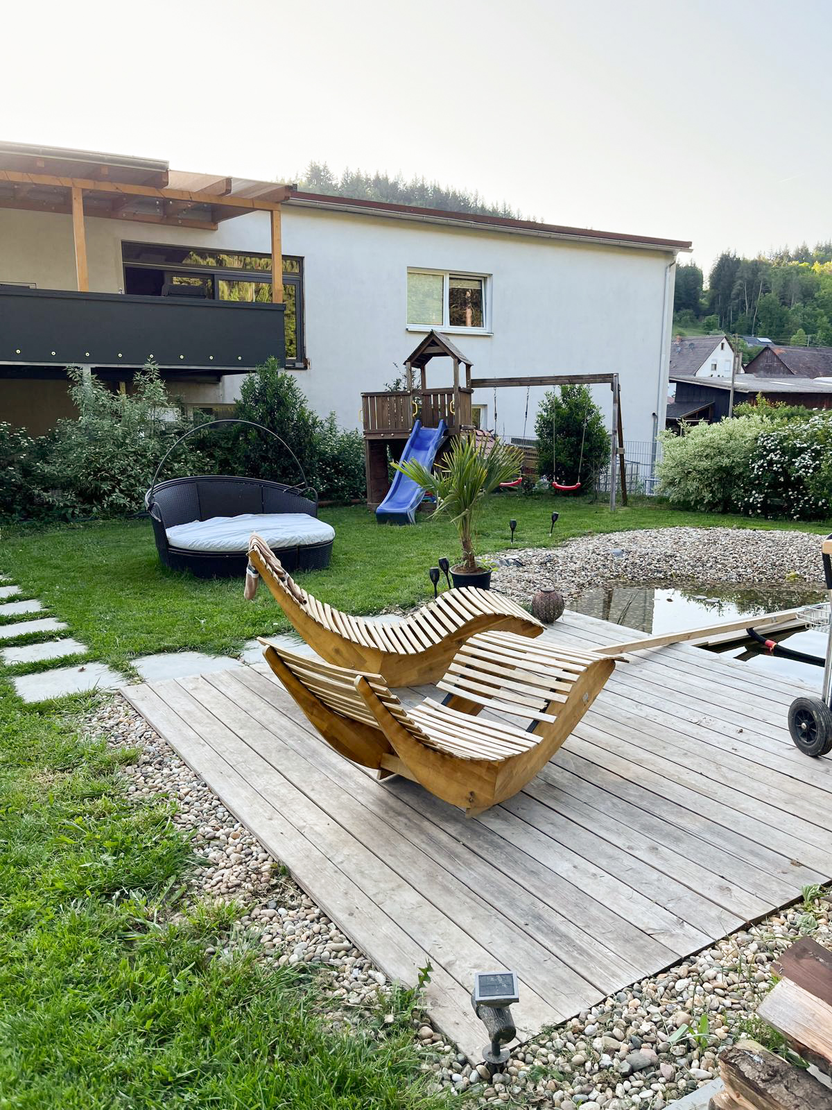 Die Terrasse sowie der angrenzende Garten laden zum Entspannen ein.