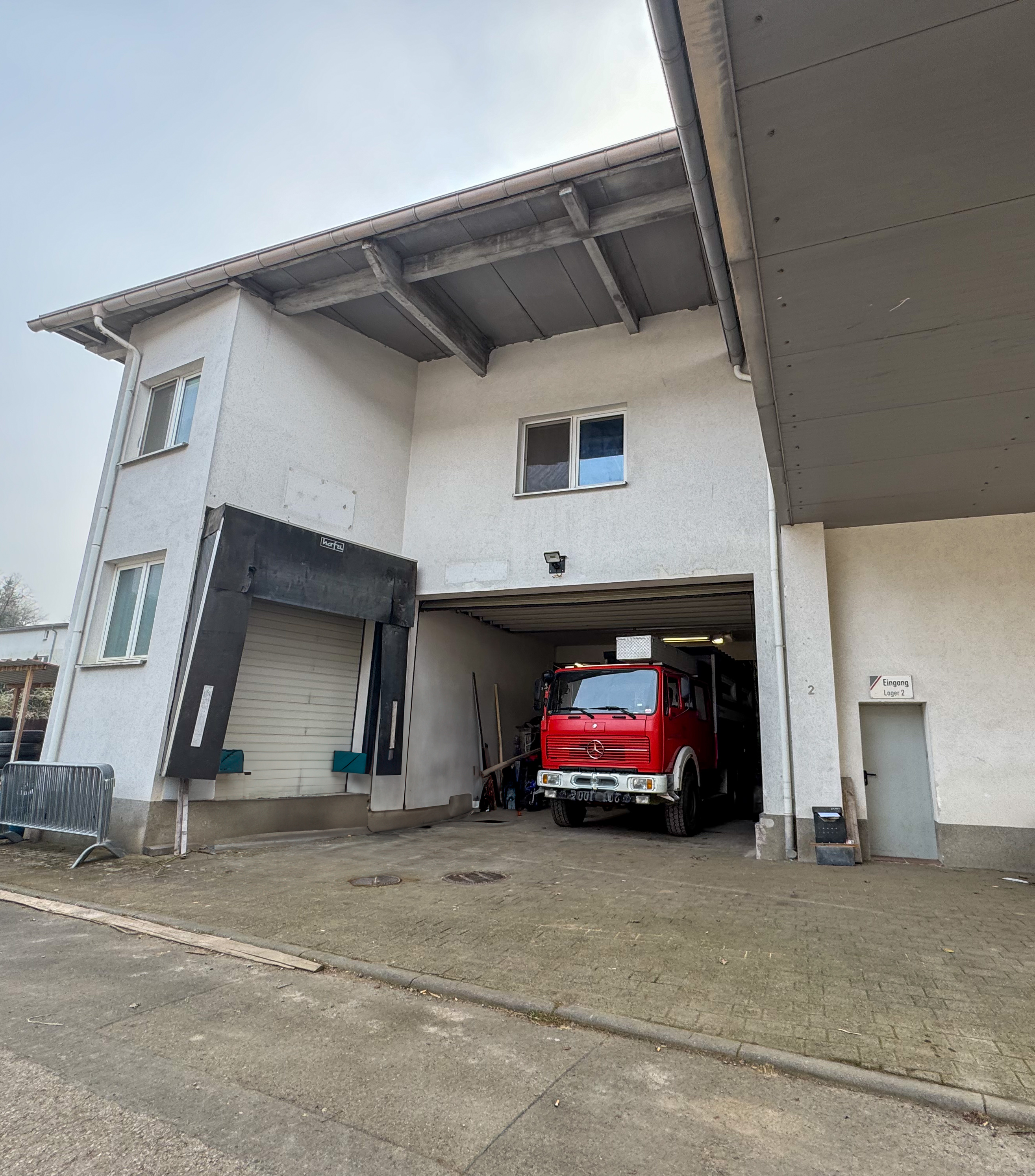 Im Erdgeschoss befindet sich die Gewerbeeinheit (Halle/Lagerfläche mit Büro und WC) mit einer Fläche von 375  qm.